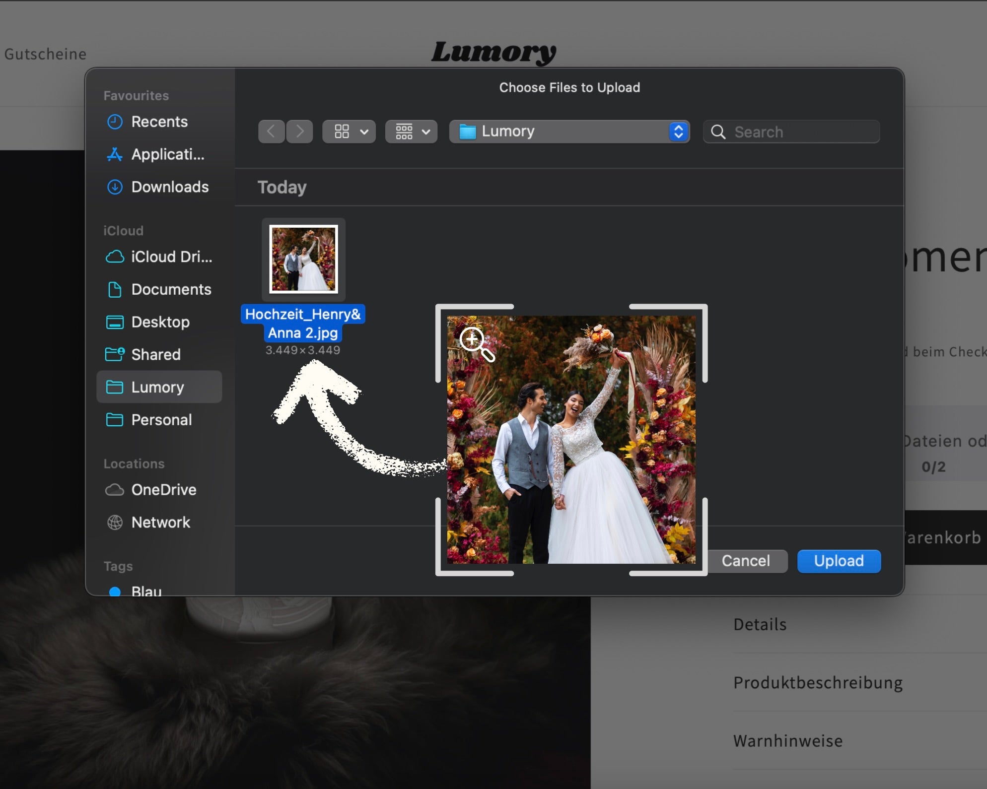 Wähle dein(e) Lieblingsfoto(s) und lade bis zu zwei Bilder pro Lampe hoch. Unser System prüft automatisch die Bildqualität (mind. 720 x 720 px) und informiert dich, falls die Auflösung zu gering ist. In diesem Fall kannst du einfach ein anderes Bild wählen oder uns per E-Mail kontaktieren.