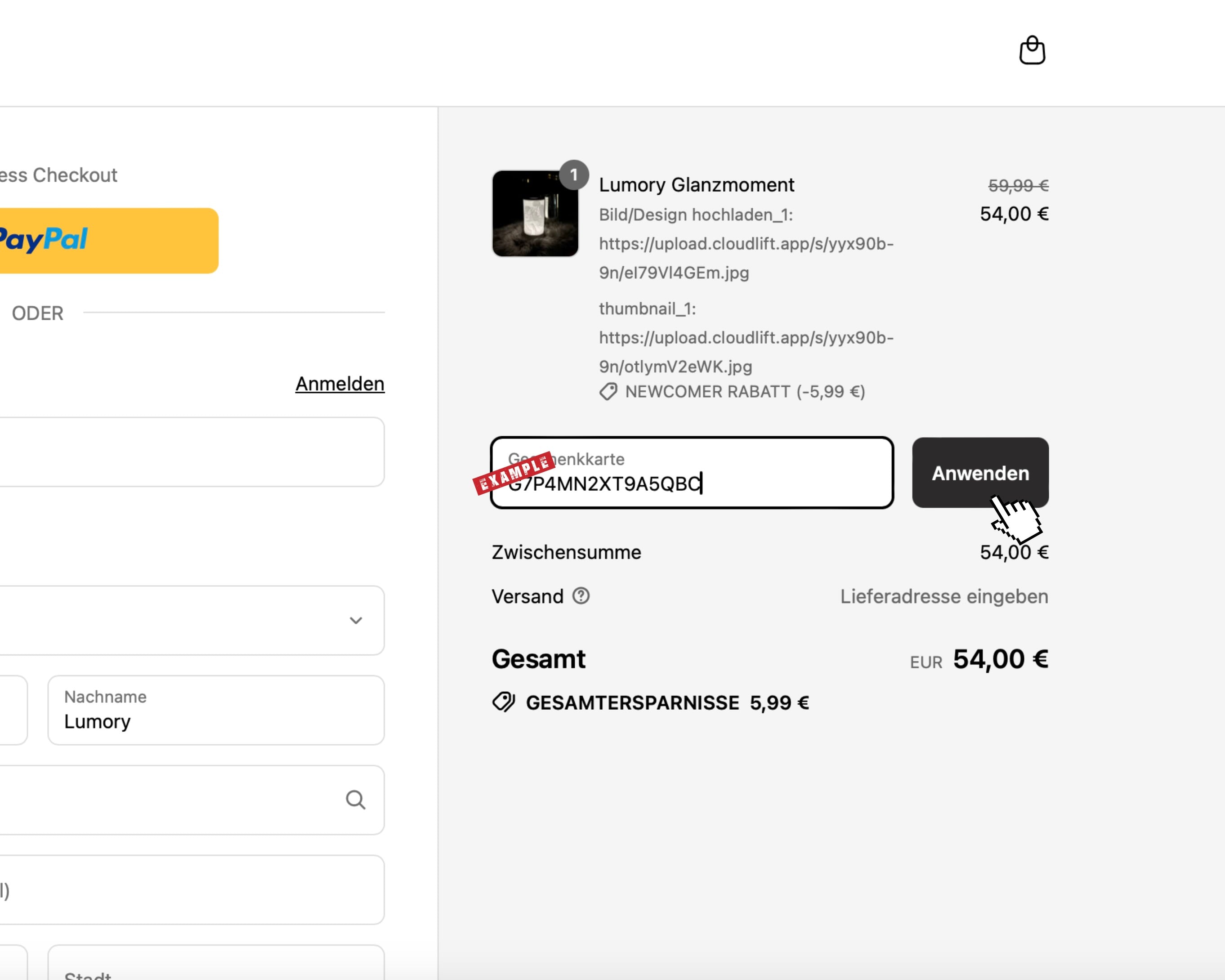 Im Checkout gibst du den Code im Feld „Geschenkkarte oder Rabattcode“ ein und der Betrag wird sofort verrechnet. Restguthaben bleibt gespeichert und kann bei späteren Bestellungen genutzt werden. Der Gutschein hat kein Ablaufdatum, sodass du ihn für immer für das gesamte Sortiment einlösen kannst. Der Gutschein lässt sich mit Rabatten/Aktionen sowie anderen Zahlungsarten flexibel kombinieren.